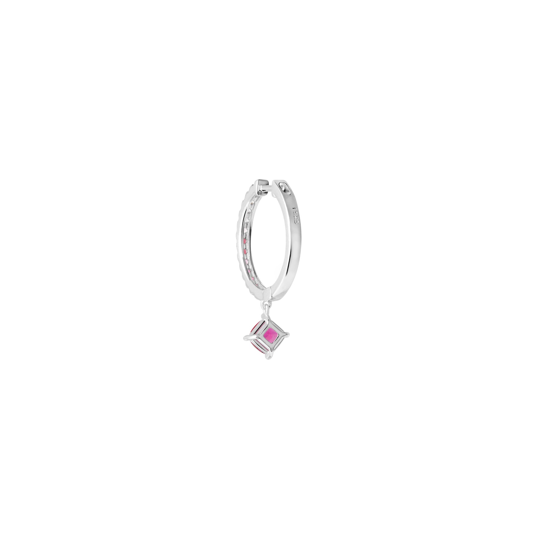 ARTĒ Gem hoop earrings each featuring a gradient-pavé hoop that elegantly suspends a cushion-cut gem in Ruby Red, adding a touch of festive sweetness to your ensembles.