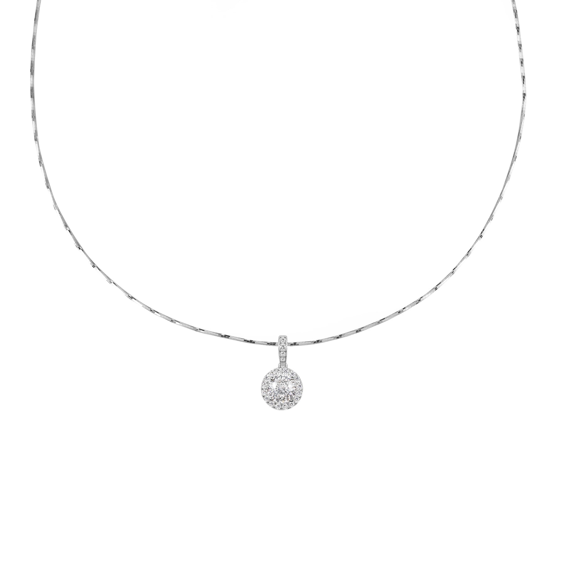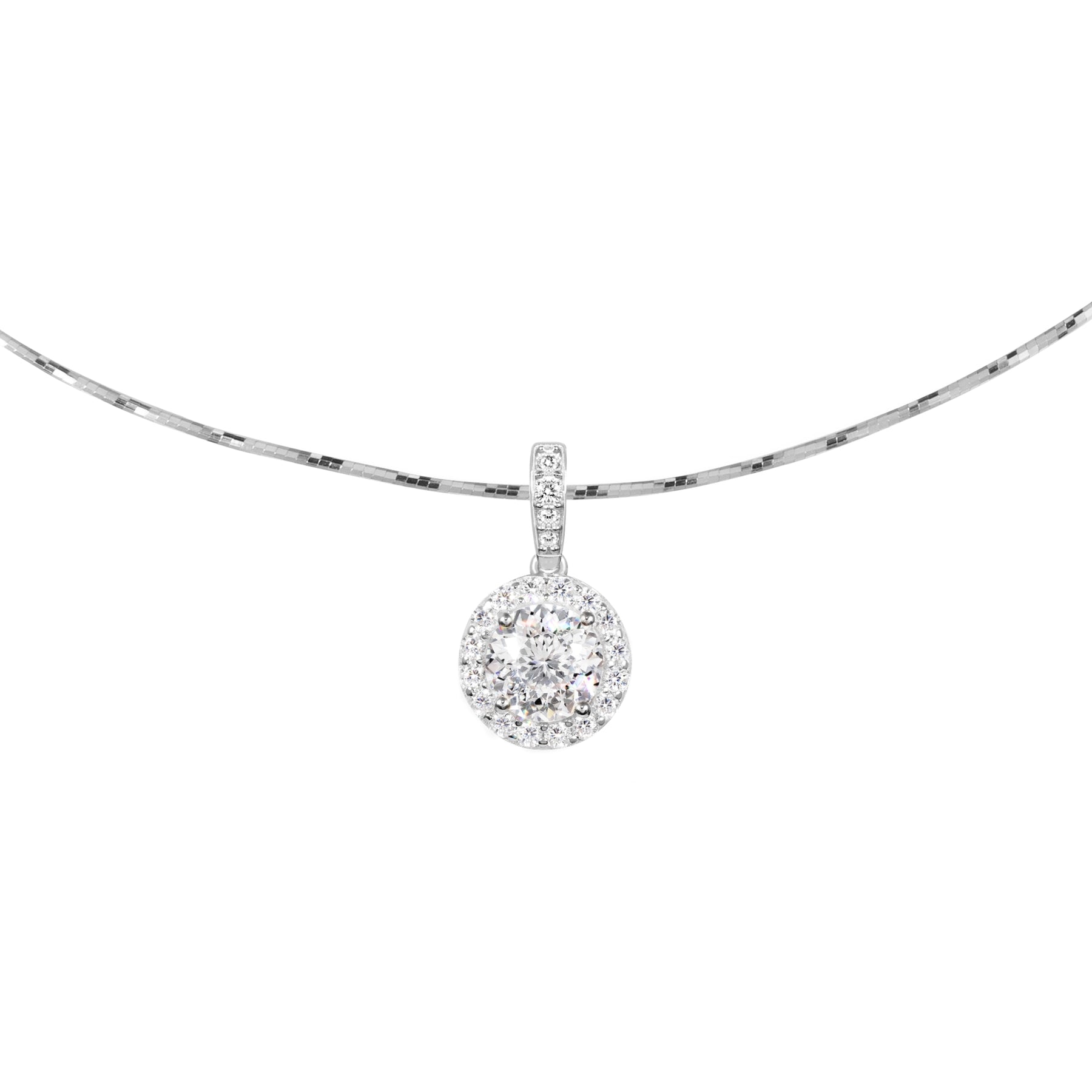ARTĒ Gem Pendant comes  with a round-cut center stone in white, surrounded by a halo of gems in white.