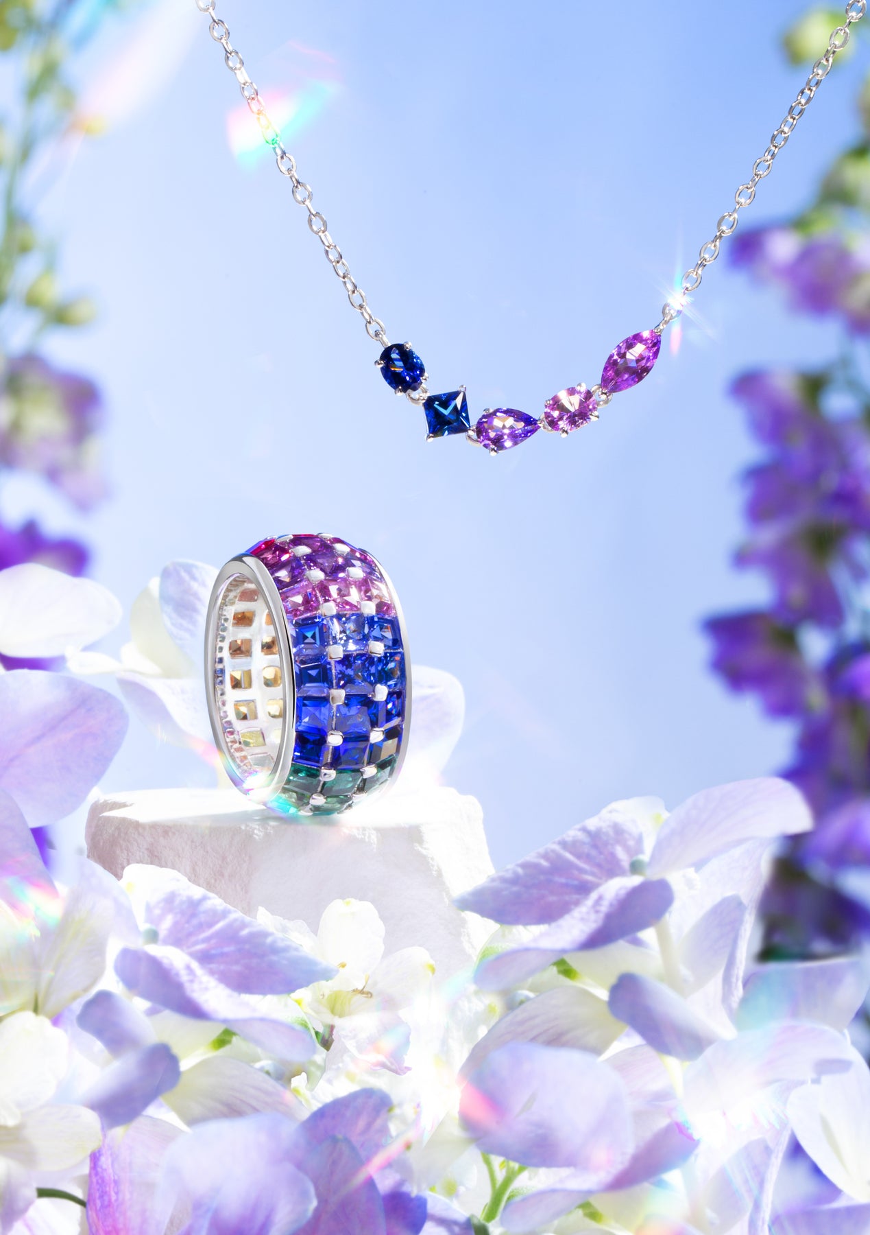 Stones: oval-cut, princess-cut, pear-cut and marquise-cut ARTĒ Lab Gems in Lilac Purple, Lavender Purple, Sapphire Royal Blue and Sapphire Deep Blue