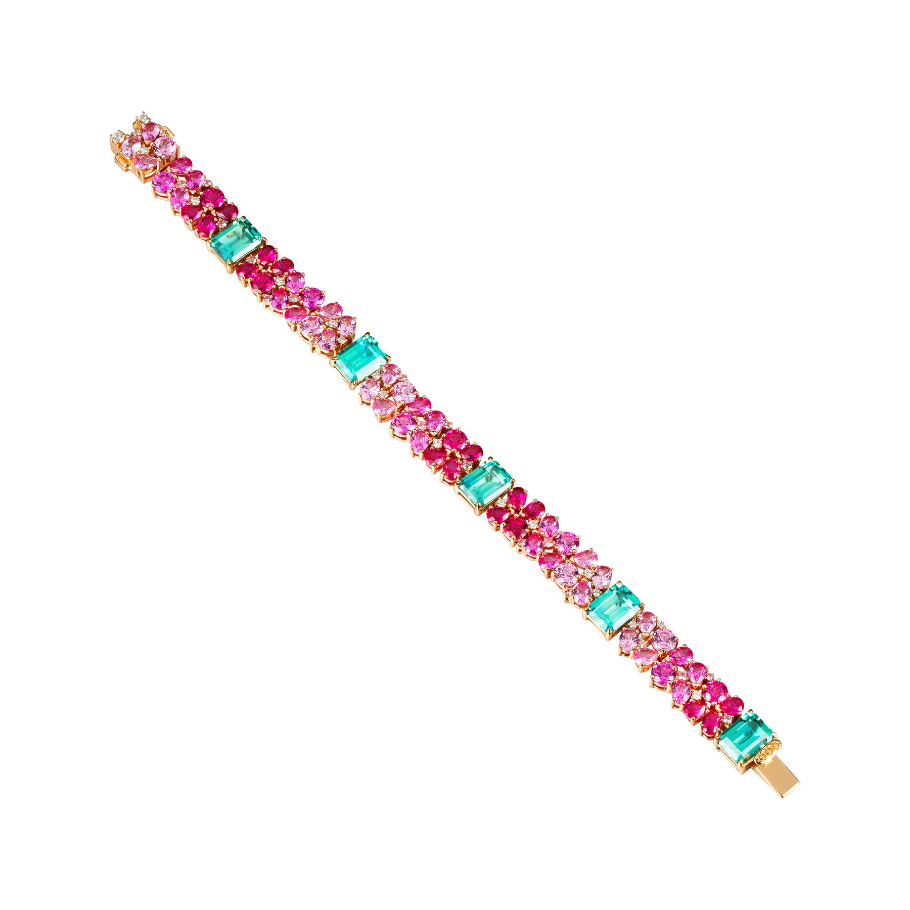 Inspired by the whimsical charm of classical ballet The Nutcracker, this exquisite bracelet celebrates colour and elegance with a stunning array of pink sapphires in an artful gradient of light pastel, vibrant hot pink, and dramatic fuchsia shades.