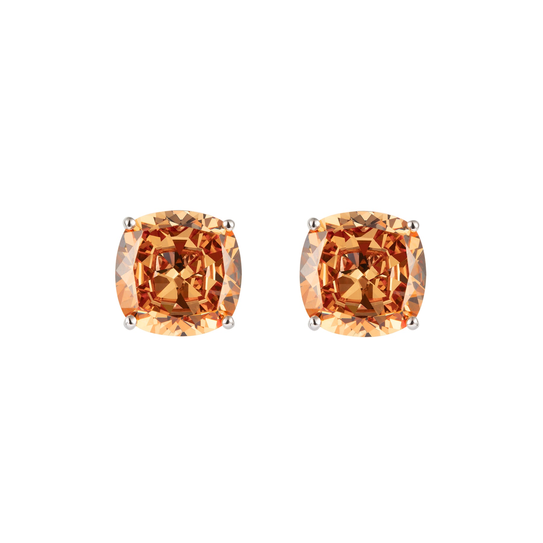 ARTĒ Gem clip-on stud earrings each features a solitaire cushion-cut gem in Citrine Orange.