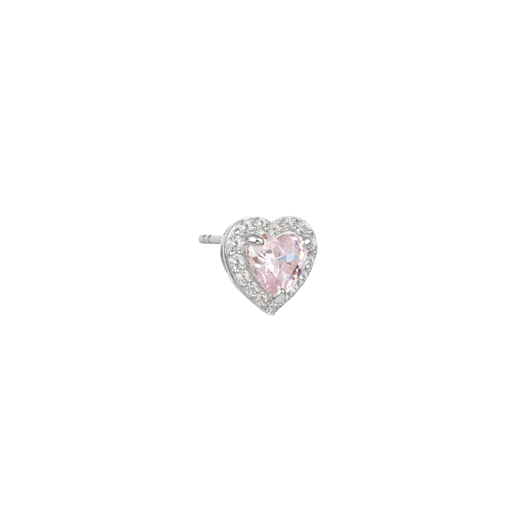 ARTĒ Gem stud earrings set with heart-cut gems in Fancy Pink, surrounded by a heart-shaped halo of gems in white.