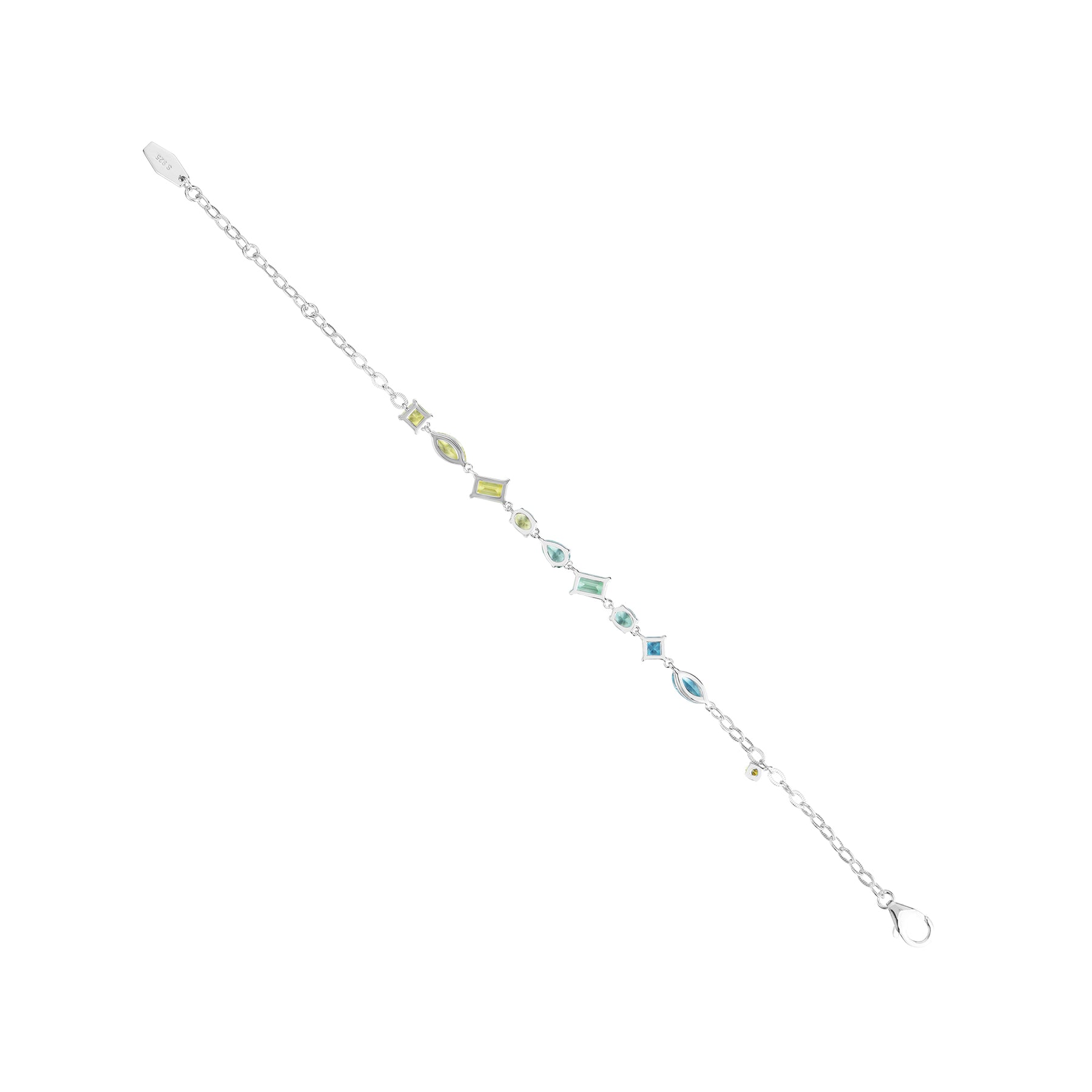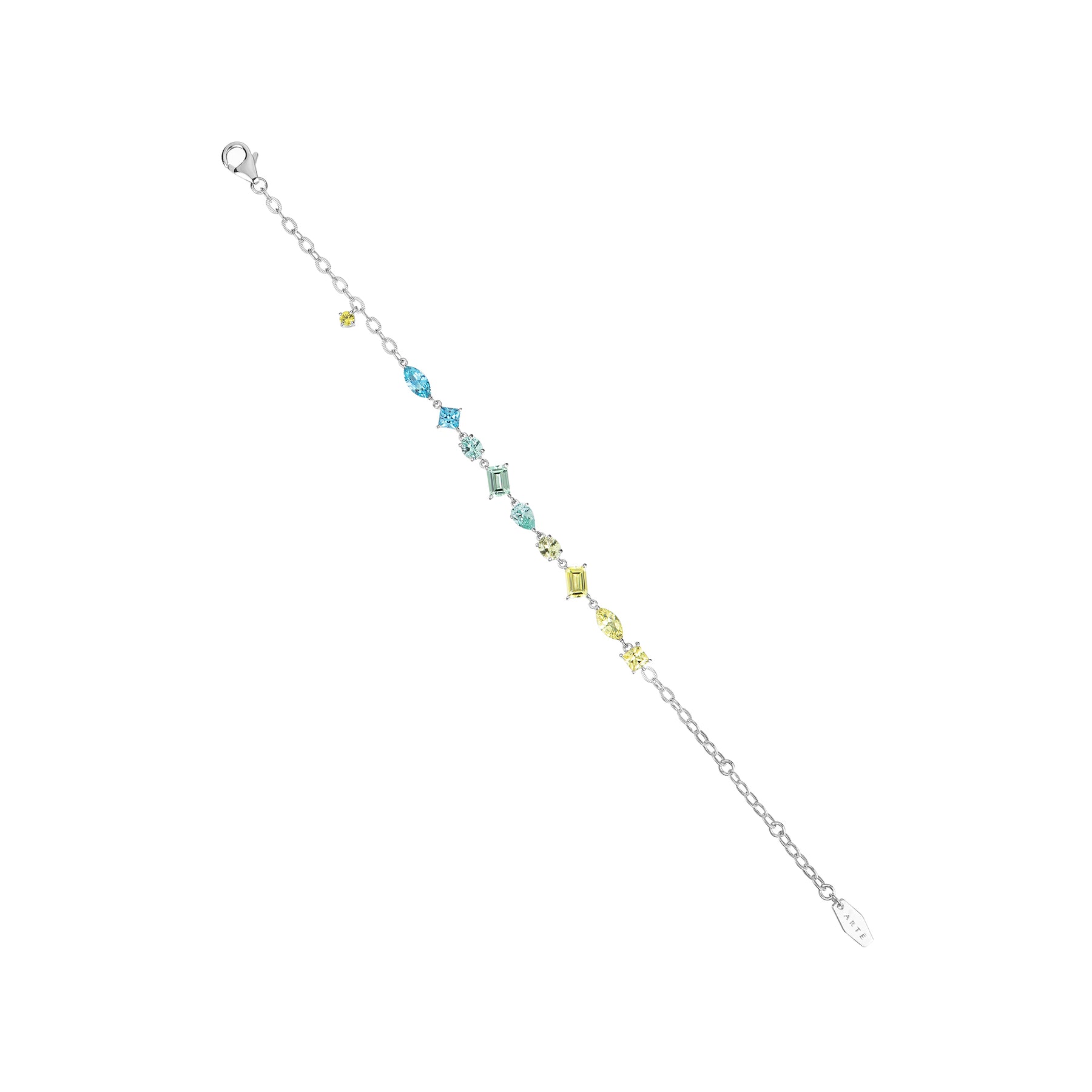 ARTĒ Lab Gem bracelet featuring a refreshing array of gemstones in various cuts, elegantly transitioning from Fancy Yellow to Bright Teal Blue hues, adding a splash of summer around your wrist.