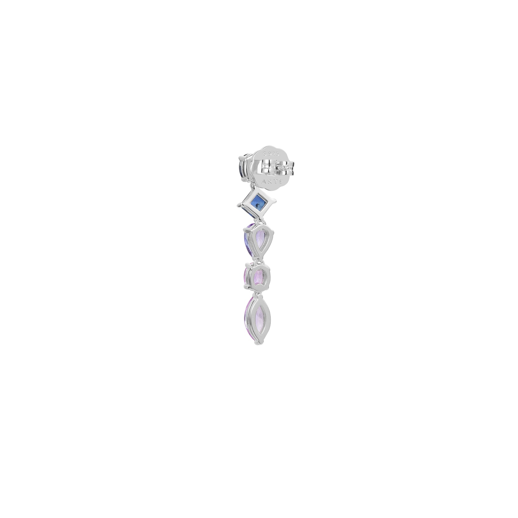ARTĒ Lab Gem dangle earrings featuring gemstones in various cuts, showcasing an alluring ombre from Sapphire Deep Blue to Lilac Purple, evoking the warmth and tranquility of a evening dusk with a stunning gradient.