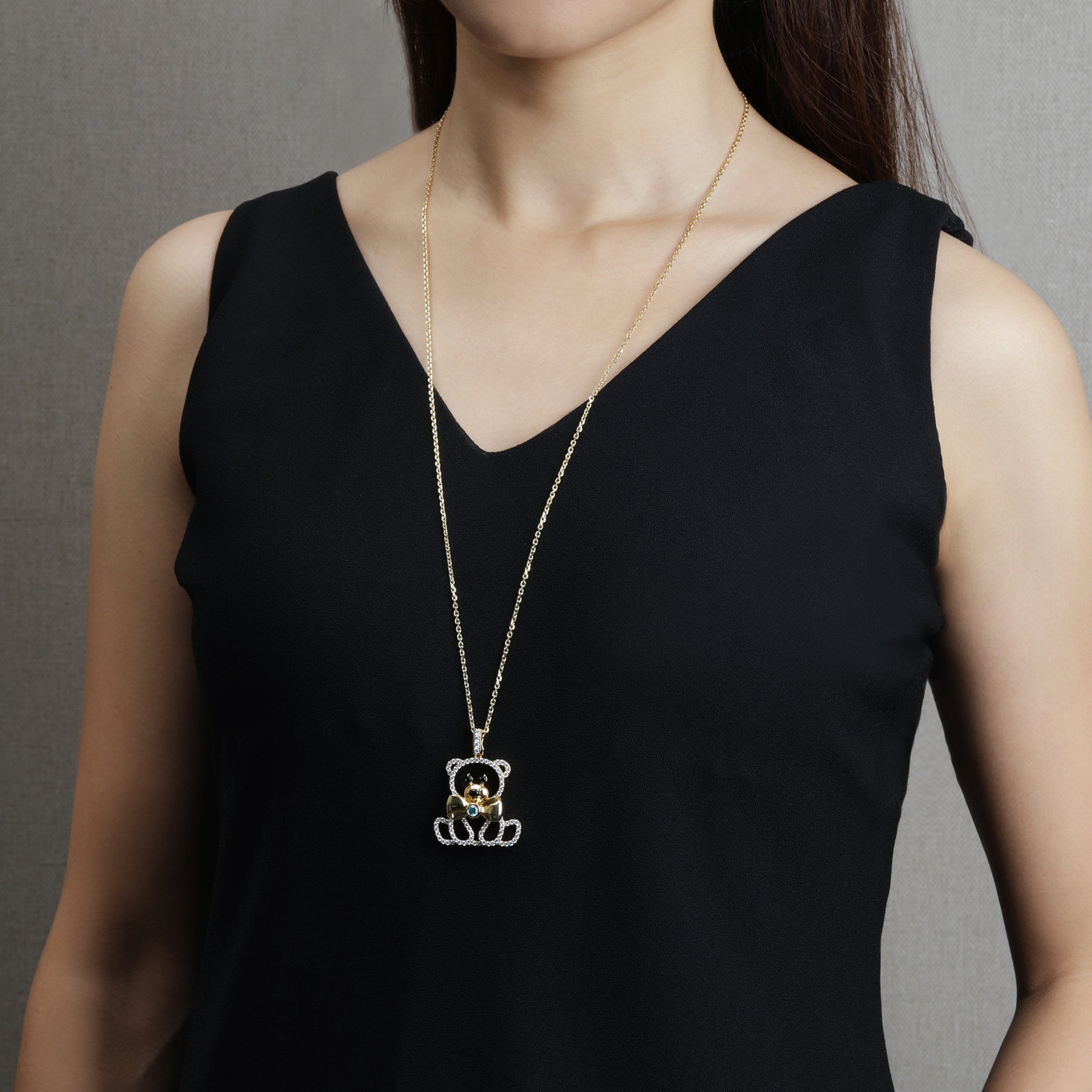 Hollow bear shape pendant paved with melee ARTE Gems.