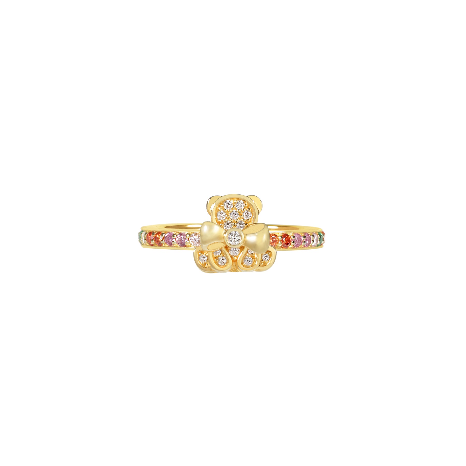 Layered bear shape ring micro-paved with multiple colour melee ARTE Gems.