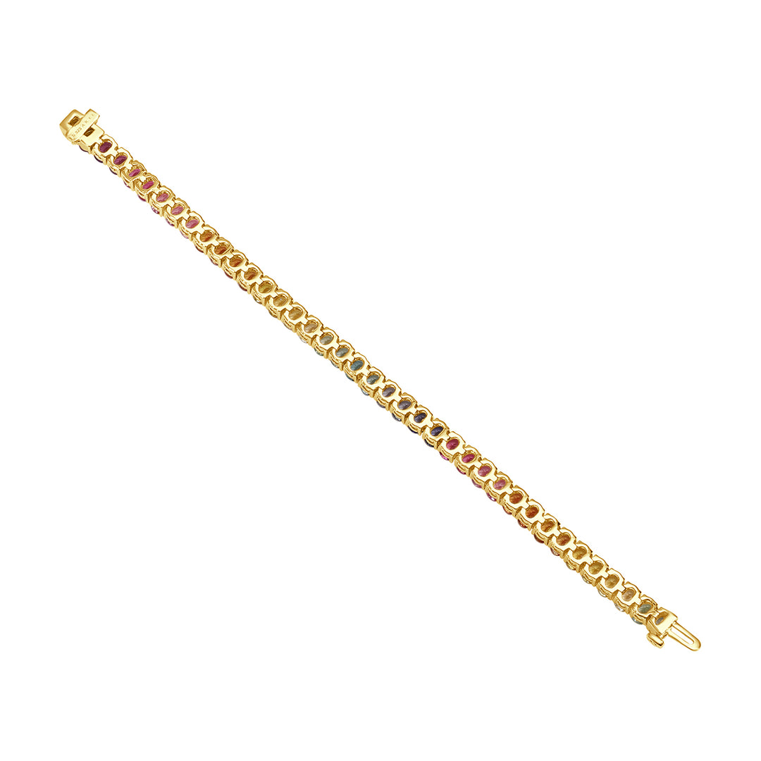 ARTĒ Stone Tennis Bracelet featuring a line of colourful oval-cut gems arranged in a gradient that mirrors the colours of the rainbow, completed with an unnoticeable clasp for a seanless closure.