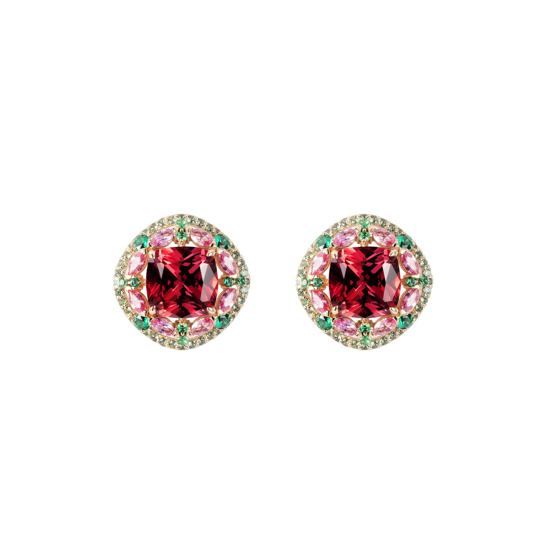 This captivating interplay of colours is enhanced by gems in shades of green, adding a celebratory vibe and a lavish touch to the design. Much like the twinkling details on a ballet dress, these earrings shimmer with brilliance, celebrating elegance and the joyous spirit —making them an unmistakable keepsake for every precious moment.